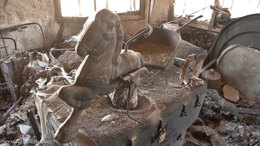 والتقطت كاميرا “سكاي نيوز عربية” صورا تظهر حجم الدمار الذي طال المتحف، إذ احترقت محتوياته بالكامل وتحولت إلى رماد.