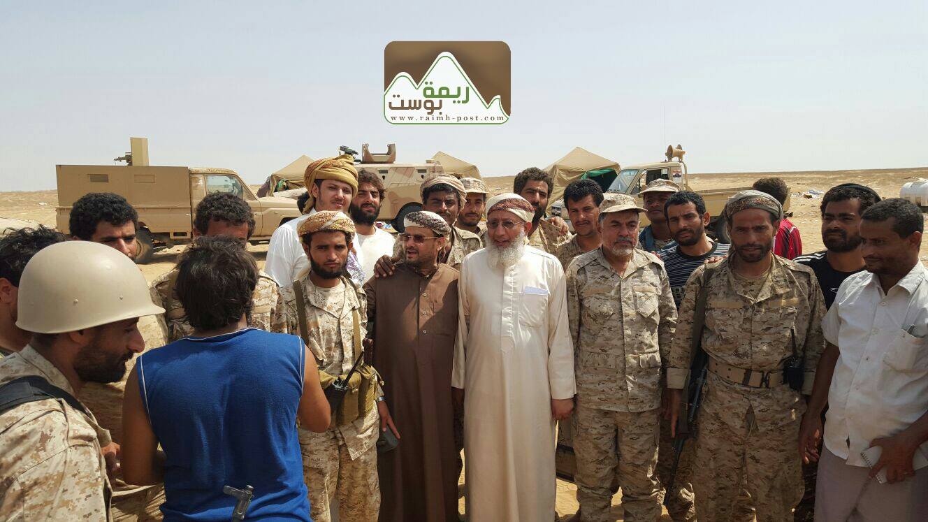 محافظ ريمة برفقة عبدالله صعتر يقومان بزيارة تفقدية للجنود المرابطين والجرحى في جبهة حرض “صور”