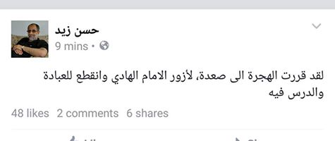 وأوضح زيد أنه سيغادر إلى محافظة صعدة “معقل جماعة الحوثيين” في رحلة وصفها بـ”الهجرة”، مبرراً ذلك بأنه سيغادر لزيارة الإمام الهادي والانقطاع للعبادة والدرس فيه، في إشارة إلى أنه سيعتزل عن أي أعمال سياسية.