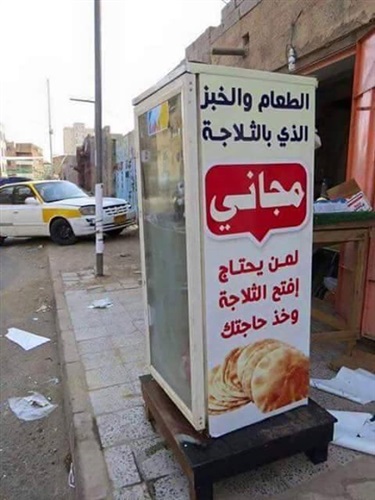 تداول رواد مواقع التواصل الإجتماعي باليمن صورة لثلاجة حفظ أطعمة بأحدشوارع صنعاء ، مكتوب عليها ” الطعام و الخبز الذي بالثلاجة مجاني لمن يحتاج أفتح الثلاجة و خذ حاجتك ” ، و أثارت الصورة إعجاب المتابعين و تشابهت تعليقاتهم على الصورة حول كرم أهل اليمن .