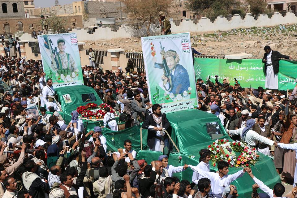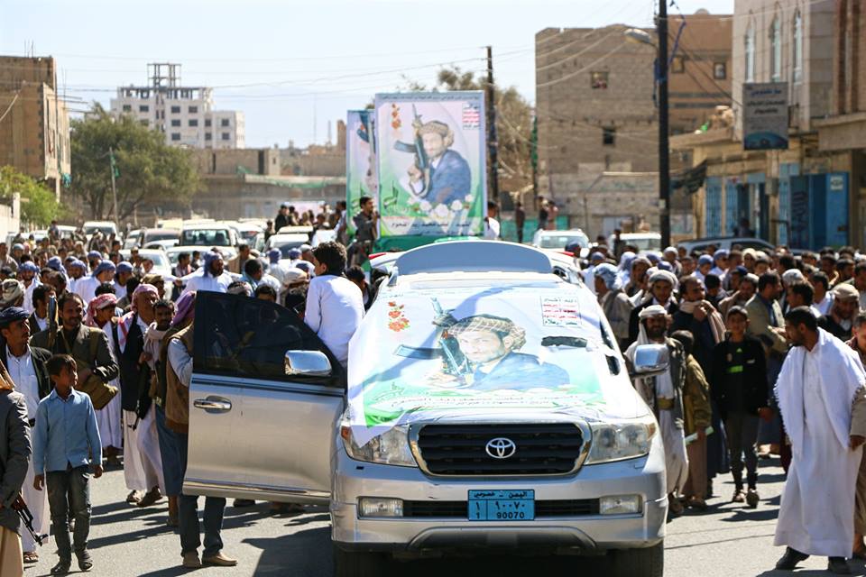 شيع الحوثيون في العاصمة اليمنية صنعاء اليوم احد كبار المنشدين يدعى لطف القحوم الذي هاجم الشرعية والدولة وصاحب نشيد مانبالي الى مقبرة صنعاء