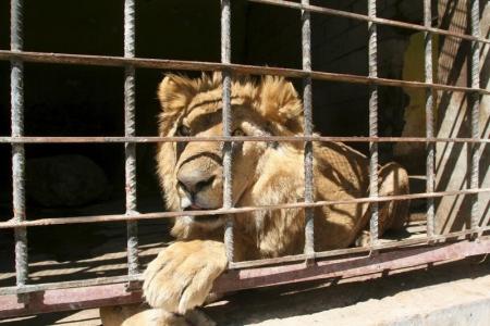 لم يعد الأسد هناك ملكا للغابة.. هناك يقبع أحد أسود الحديقة وقد بدا هزاله واضحا في بروز فقرات عموده الفقري وتقيحات تغطي معظم أجزاء جسده.