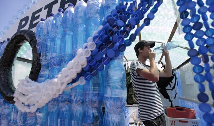 تحتوي زجاجات البلاستيك على مادة البولي إثيلين تيريفلايت (بي إي تي)، وهي عنصر بلاستيكي يوجد أيضا في العديد من المنتجات الأخرى مثل ملابس البوليستر، وزجاجات الصودا، وكرات التنس.