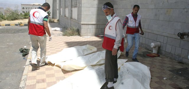 ارتكبت ميليشيات الحوثي والمخلوع علي صالح الانقلابية، أول من أمس، مجزرة جديدة بحق المدنيين في محافظة تعز، أودت بحياة تسعة وإصابة أكثر من 42 آخرين، في حين عبّر التحالف اليمني لرصد وتوثيق انتهاكات حقوق الإنسان (رصد) عن استنكاره وإدانته الشديدة لما تقوم به ميليشيات الحوثي وصالح من قصف متعمد على المناطق المأهولة بالسكان في محافظة تعز، فيما تخفي جثث قتلاها في الآبار.