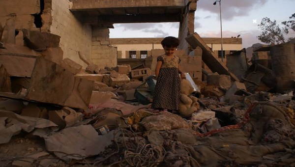 الجائزة الثانية، حصل عليها حمزة شايف يحيى القديمي، وتظهر طفلة استخرجت دميتها “الدب”، من تحت ركام منزلها بعد أن تعرض للقصف بشارع مأرب، في صنعاء، بمدينه عمال مصنع الغزل والنسيج.