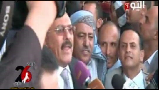 القى “المخلوع صالح، صباح اليوم السبت، خطاباً مباشر وسريعاً فور وصوله الى ميدان السبعين في المهرجان الذي أقامه حزبه، والذي لم يتجاوز بضع دقائق، ثم غادر إلى جهة غير معلومة.