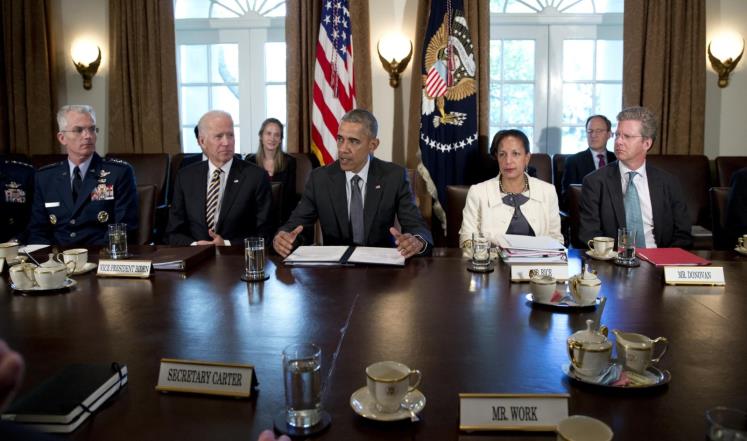 وأكد بمستهل اجتماع في البيت الأبيضمع كبار المسؤولين العسكريين على استمرار العمل على إضعاف قيادات تنظيم الدولة وشبكاته المالية وبنيته التحتية، مضيفا أن رقعة “سيطرة الجهاديين” في سوريا والعراق لا تزال تتقلص.