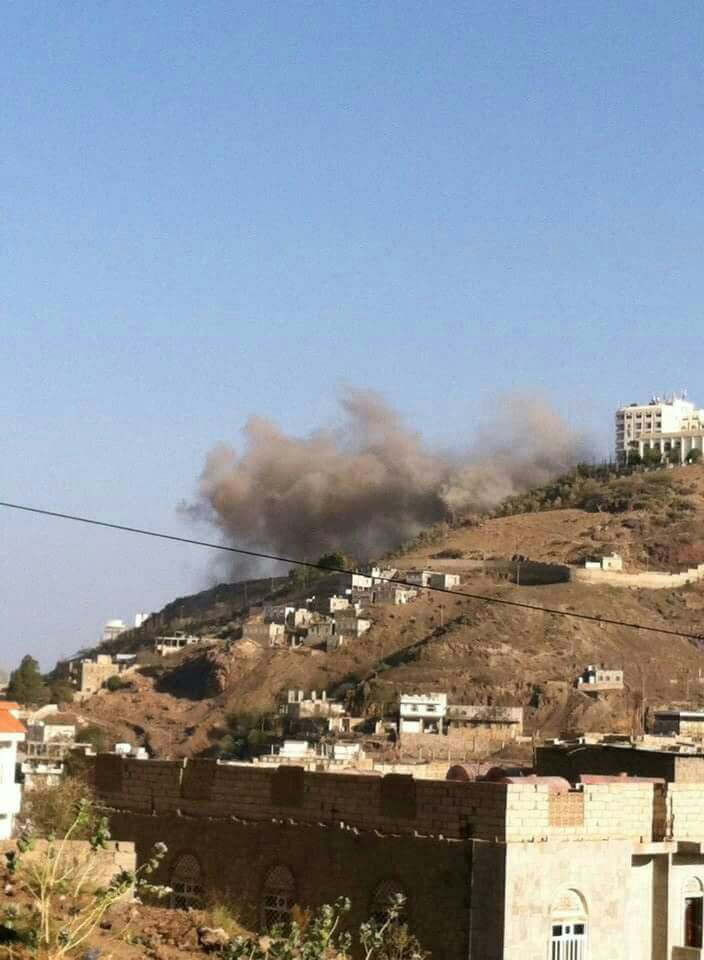 من جانب اخر قالت مصادر اعلامية ان مقاتلات التحالف العربي تشن في هذه الاثناء غارات جوية على مواقع ومناطق تجمعات مليشيا الحوثي وحليفها صالح في محافظة تعز.