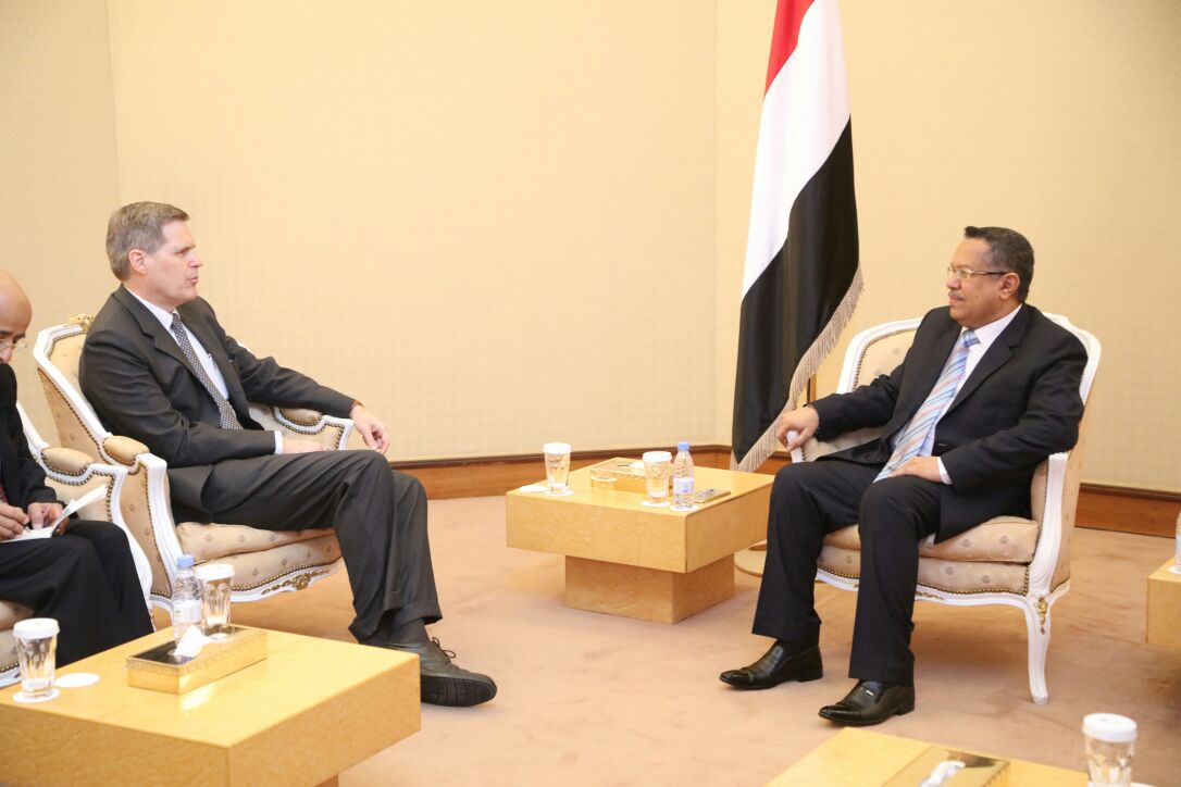 التقى رئيس مجلس الوزراء الدكتور أحمد عبيد بن دغر اليوم السفير الأمريكي لدى اليمن ماتيو تولر.