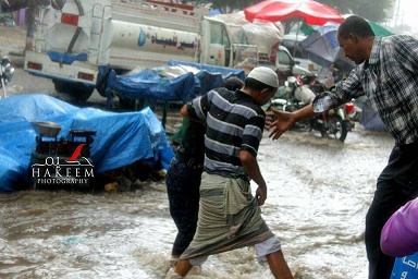 هطلت أمطار غزيرة مصحوبه بحبات البرد على مدينة تعز اليوم السبت في أول موسم صيفي لهذا العام حيث شهدت المدينة تدفق كبير للسيول التي روت الأرض والنفوس أيضاً.