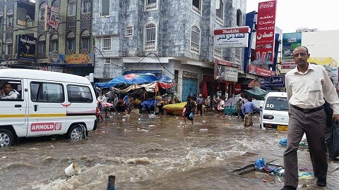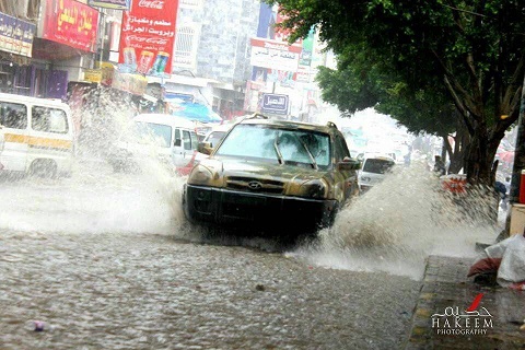 وازدحمت شوارع مدينة تعز بالناس والسيارات رغم الحرب والقصف والحصار فيما غسل المطر الغزير حزنها وألمها فبدت وكأنها في ريعان شبابها، متورده ومفعمة بالحياة.