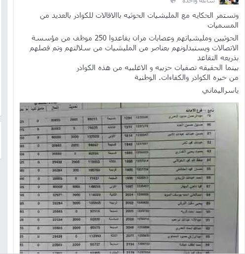 “وتستمر الحكايه مع المليشيات الحوثيه باالاقالات للكوادر بالعديد من المسميات
