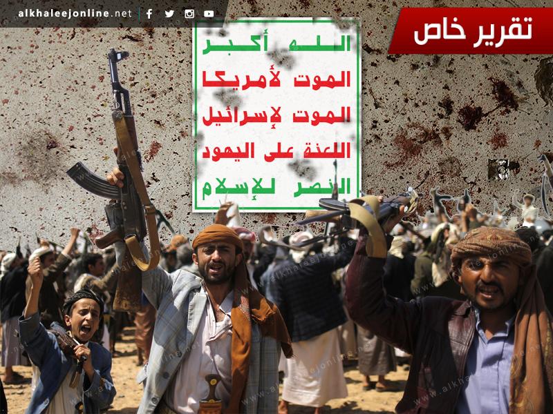 “الله أكبر، الموت لأمريكا، الموت لإسرائيل، اللعنة على اليهود، النصر للإسلام”؛ شعار صار يملأ الأماكن في المناطق التي يسيطر عليها الحوثيين، بل إن المسلح الحوثي لمن لا يعرفه من هيئته، يستدل عليه من سلاحه، حيث يلصق الشعار على سلاحه.