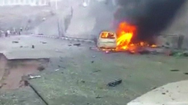 وقال السكان إن الحراس أطلقوا النار على المهاجم وإن السيارة التي كان يقودها إنفجرت.