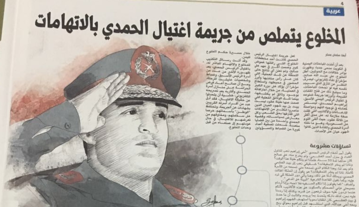 لعل جريمة اغتيال الرئيس الحمدي كانت أحد مخططات المخلوع، التي رافقها غموض كبير وصمت أكبر في عهد علي صالح، ولم تعلن أي نتائج حتى اللحظة عن تلك العملية، التي كان على رأس منفذيها وأبرز الحضور في محيطها، واستطاع مؤخرا أن يؤكد على دوره الكبير في العملية، من خلال اعترافاته بوجود وثائق لم يكشفها، بينما تلك الوثائق الفعلية التي صمت عنها طيلة عقود ليست بيده، بل بيد شهود العيان الذين عاصروا الكثير من الانتهاكات التي اقترفها بحق الشعب وكل معارض لسياساته، وقضية الحمدي واحدة من بين قضايا متعددة، شملت تصفية أعداد كبيرة من الضباط والمسؤولين خلال مسيرة حكم المخلوع لليمن.
