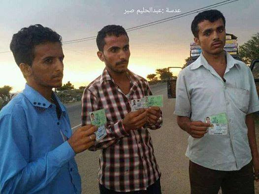 الصورة تظهر ثلاثة من الطلاب الجامعيين من أبناء محافظة تعز، تم ترحيلهم من داخل جامعة عدن، من قبل مسلحين يتبعون لحملة الحراك الانفصالي ضد المواطنين الشماليين،