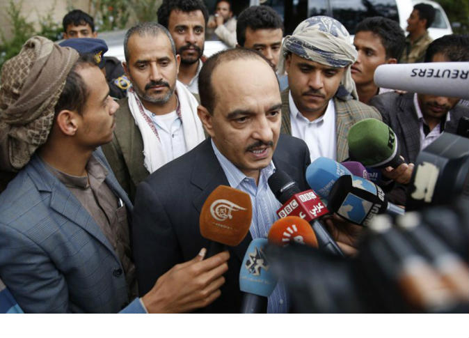 تداول رواد مواقع التواصل الاجتماعي، اليوم الثلاثاء، مقطع فيديو تم التقاطه خلال مؤتمر صحفي في إحدى قاعات مشاورات الكويت التي أقيمت برعاية الأمم المتحدة بين وفد الحكومة اليمنية الشرعية ووفد الانقلابيين.