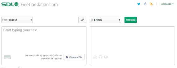 يعتبر من أفضل مواقع الترجمة حالياً، Free Translation يقدم خدمة الترجمة الفورية للنصوص الطويلة بصفة مجانية أيضاً لكن بأداء أفضل ونتائج أحسن بكثير من جوجل، وخاصة الترجمة إلى اللغة العربية.
