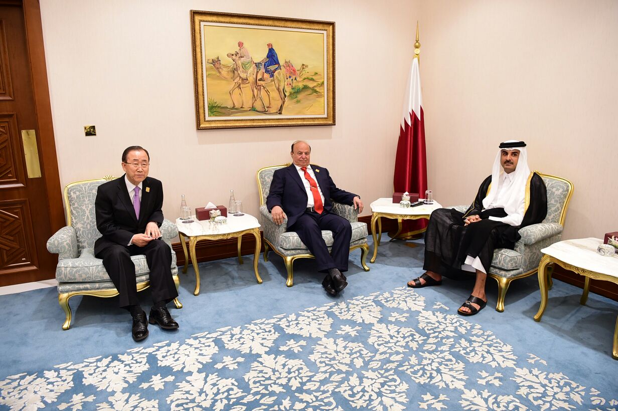 عقد مساء اليوم في العاصمة القطرية الدوحة قمة ثلاثيه جمعت رئيس الجمهورية عبدربه منصور هادي وأمير قطر الشيخ تميم بن حمد آل ثاني وأمين عام الأمم المتحدة بان كي مون .