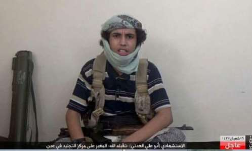 وقال التنظيم ان الصورة هي للانتحاري ويدعى “أبو علي العدني” ويبدو في الـ 17 من عمره .