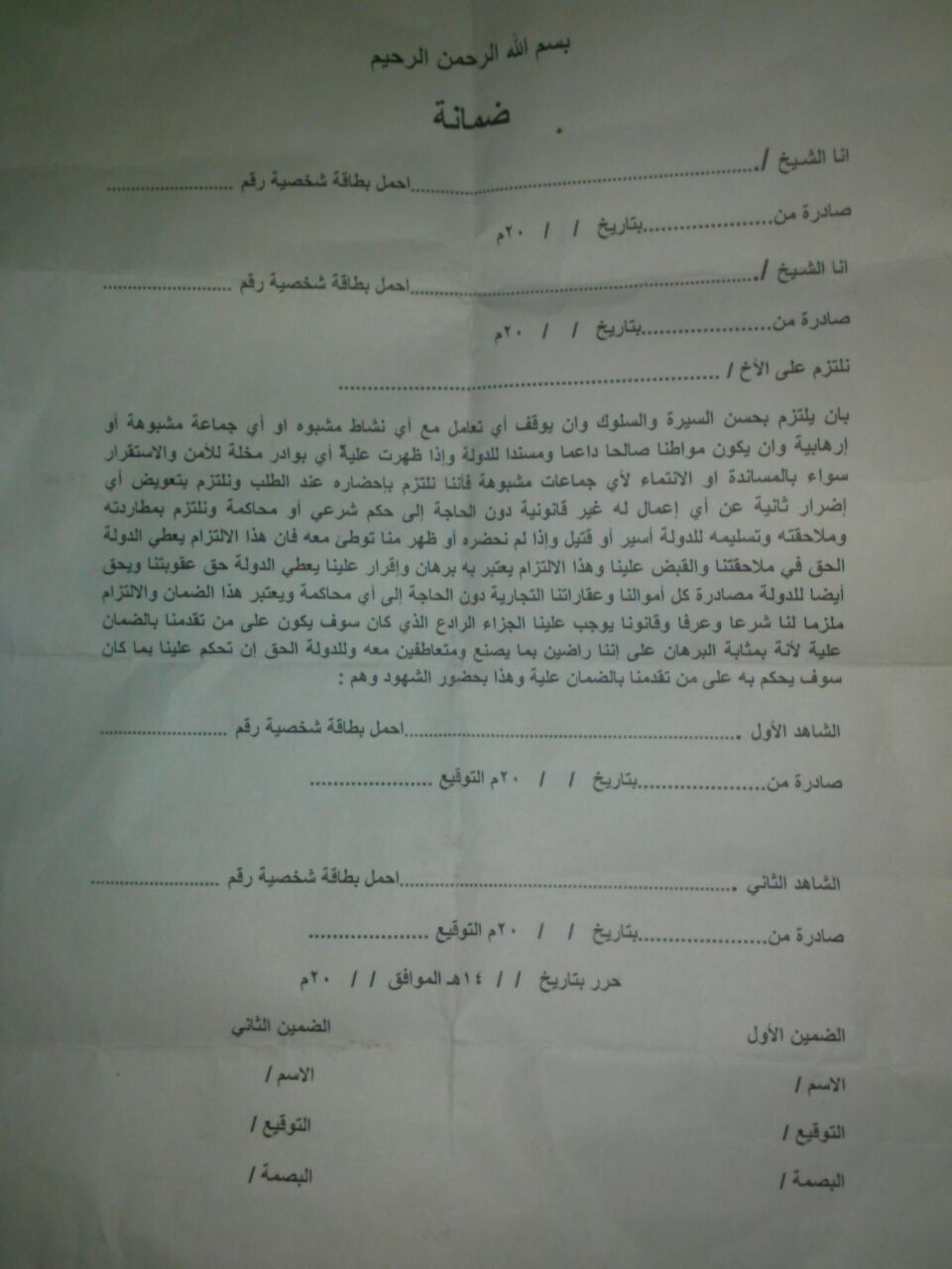 واضافت الوثيقة ان من حق المليشيا مصادرة كافة اموال الضامن وعقاراته ” دون الحاجة الى محكمة” وان تطبق على الضامن كافة الاحكام التي كتنت ستصدر على المعتقل في حالة عدم حضوره.