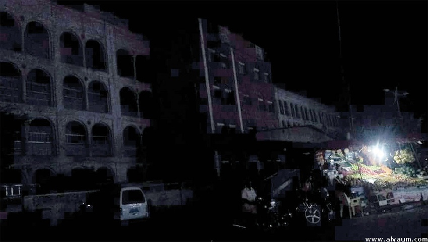 مؤخرا ظهر المستشفى مبنى تسكنه الأشباح وأظهر مبناه المظلم بسبب انقطاع الطاقة الكهربائية التي تزوده بها محطة الكثيب البخارية ً قدر العبث الممنهج لميليشيات الحوثي حتى غدا المستشفى أحد مراكز تجمع قيادييها متخذين من موقعه بين تجمع سكاني من جهة الشمال وشارع صنعاء المكتض بالحركة التجارية من الجنوب والمدارس القريبه منه وقد التقطت «اليوم» صورة للمستشفى وهو مظلم تكاد تظهر صورة المستشفى جراء الظلام الدامس.
