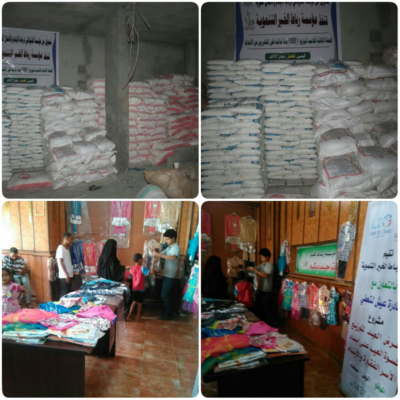اختتمت مؤسسة رباط الخير التنموية مشاريعها الرمضانية بحملة توزيع1000 سلة غذائية بتمويل مؤسسة الشوكاني الخيرية ، استهدفت الأسر النازحة والمتضررة من الاحداث في تعز ، ومشروع معرض العيد الخيري لتوزيع ملابس العيد على الايتام وابناء الاسر الفقيرة والنازحة في صنعاء الادارة العامة بالتعاون مع مبادرة عيش لتعطي الشبابية .