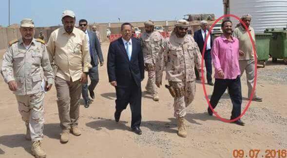 شائع وقائد المنطقة العسكرية الرابعة اللواء أحمد سيف اليافعي برفقة أحد قيادات قوات التحالف العربي.