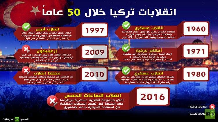 شاهد بالانفوجرافيك: انقلابات تركيا خلال نصف قرن