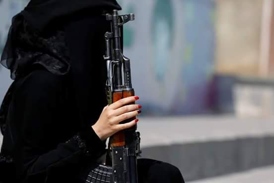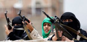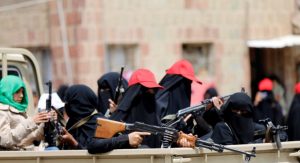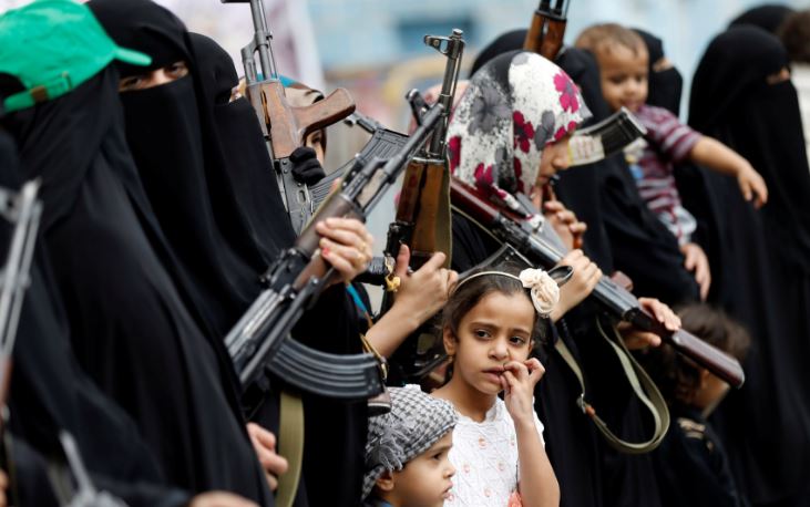عرض الحوثيون شابات يمنيات مواليات لهم في صنعاء، يحملن أسلحة ومعدات عسكرية في أحدث حملاتهم للترويج لما يعتبرونه دعما شعبيا للجماعة.