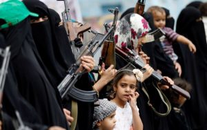 وتشهد صنعاء ازديادا في عدد الأطفال الذين ارتدوا سلاح الميليشيات الحوثية، وتم استخدامهم في الخدمات العسكرية والأمنية وتوصيل الرسائل والحراسة، فلا يكاد يخلو شارع من شوارع العاصمة صنعاء من أطفال تتراوح أعمارهم بين 14-و18 عاما يحملون السلاح عند نقاط التفتيش، أو يعملون حراسا لمؤسسات حكومية أوشركات أو جامعات.