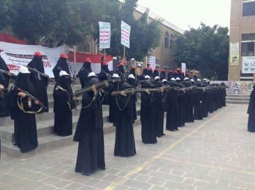 جدير بالذكر أن مجموعة من النسوة المنتمية لجماعة الحوثي أقامت قبل ما يقارب الشهر فعاليات ومظاهرات “مسلحة” تؤيد الجماعة وتعلن استعدادها للقتال الى جانبهم.