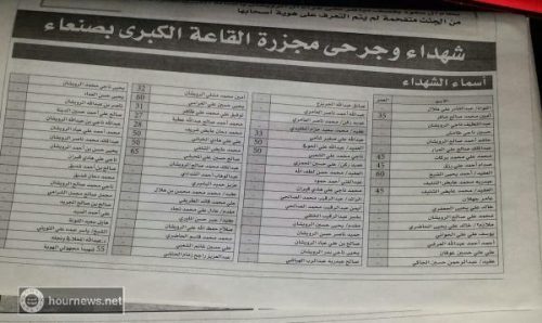 ونقلت وكالة الأنباء اليمنية (سبأ) الخاضعة لسيطرة الحوثيين عن الشامي قوله “أن عدد ضحايا مجزرة قاعة العزاء مرشح للزيادة ” .