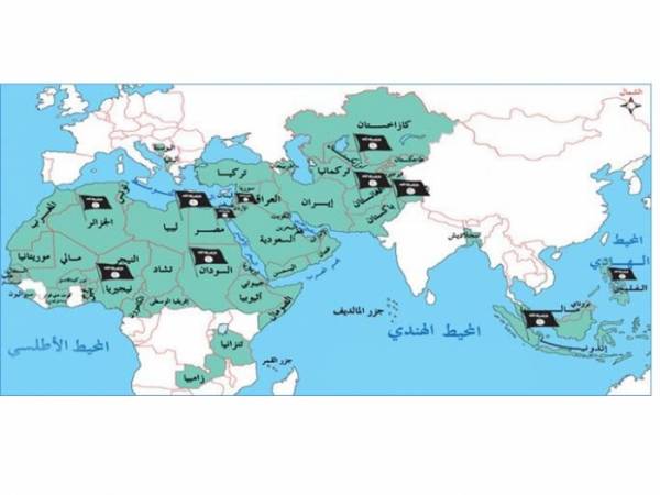قال مصدر عراقى بمحافظة نينوى، الأربعاء، إن إخلاء تنظيم “داعش” الإرهابي لأحد مقاره الرئيسية في الموصل كشف عمّا أسماه بـ”خريطة أرض الخلافة” والتي تضم 16 ولاية جديدة في دول عربية وإسلامية بينها مصر.