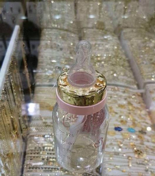 صعد هاشتاغ (#رضاعات_مرصعه_بالذهب) في تويتر السعودية بعد انتشار خبر يفيد بظهور رضاعات أطفال مرصعة بالذهب في محلات بيع الذهب والمجوهرات في المملكة.