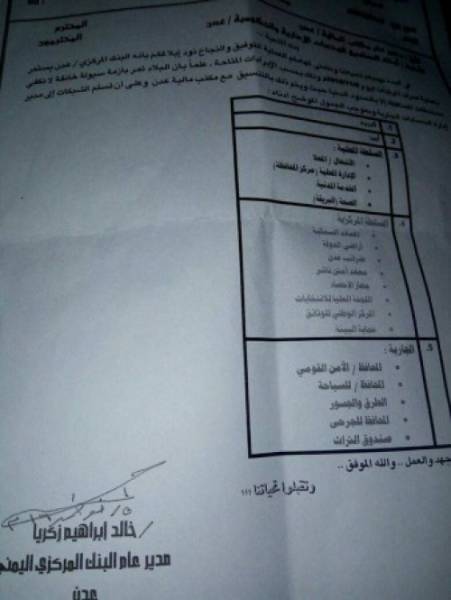 قال مدير البنك المركزي في عاصمة اليمن المؤقتة عدن خالد زكريا أن البنك سيبدأ من صباح الأحد صرف المرتبات الشهرية المتأخرة لبعض المرافق والجهات .