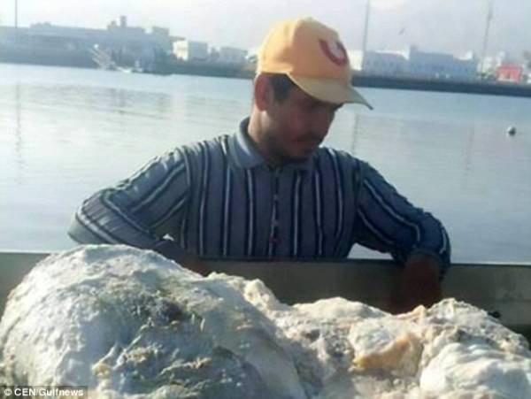 ويروي الصياد خالد السناني، أنه عثر على مادة عنبر الحوت عن طريق الصدفة، حيث كان في طريقه إلى المنزل، حينما فاحت رائحة كريهة من مسافة بعيدة، وبالمتابعة وجد مادة عملاقة تعوم مع الأمواج، قبالة ساحل القريات في سلطنة عمان.