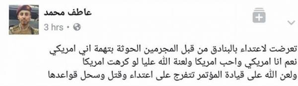 تعرّض عسكري مقرب من الرئيس اليمني المخلوع علي صالح، والمنتمين لحزب المؤتمر الشعبي العام، للضرب المبرح من قبل مجموعة من الحوثيين، بتهمة أنه يحمل الجنسية الأمريكية.