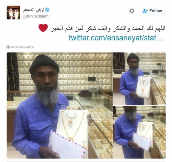 وانتشرت الدعوات بين مغردين سعوديين للتعرف على الشخص الذي ظهر بالصورة، ومن ثم نشرت حسابات صوراً للعالم وبحوزته طاقم ذهب.