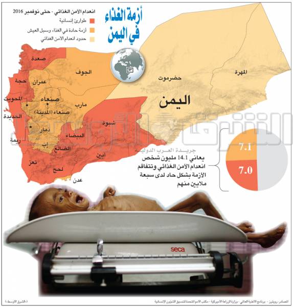 وأوضح مسؤول الأمم المتحدة أن الحرب حرمت أكثر من 14 مليون نسمة – هم نصف عدد السكان – من «الأمن الغذائي» وأن سبعة ملايين منهم يتضورون جوعا.
