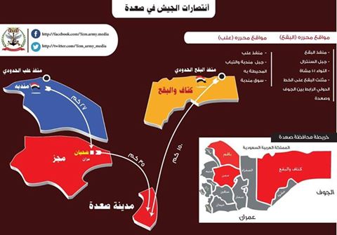 ومنذ انطلاق معركة تحرير صعدة في الحادي عشر من شهر اكتوبر 20166م تمكنت وحدات الجيش من تحرير مناطق واسعة ومواقع استراتيجية.