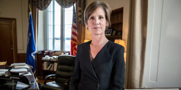 وكانت سالي ييتس القائمة بأعمال وزير العدل الأمريكي والتي تعد أكبر محامية عن الحكومة الاتحادية قد اتخذت خطوة نادرة غير معتادة بتحدي الرئيس دونالد ترامب بقولها إن وزارة العدل لن تدافع عن قيود جديدة على السفر تستهدف سبع دول ذات أغلبية مسلمة لأنها غير مقتنعة بأنها قانونية.