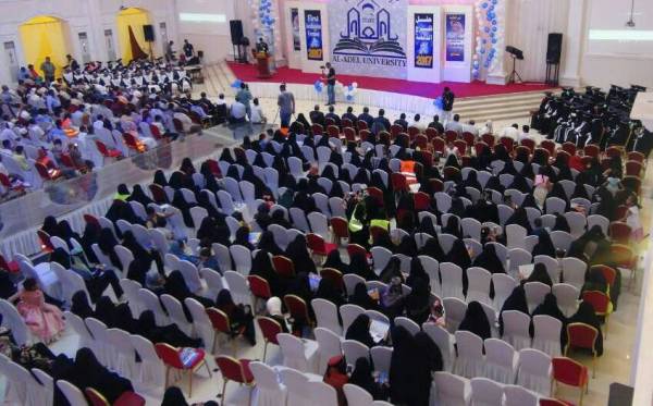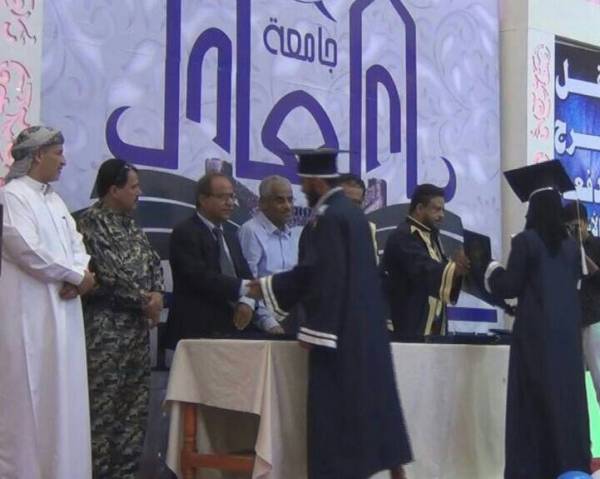 وفى نفس السياق حيا الدكتور: فهمي حسين با نافع – رئيس جامعة العادل: في كلمته منتسبي الجامعة من اعضاء هيئة التدريس والعاملين وكذلك الطلاب .. مؤكداً ان مجلس الأمناء بالتعاون مع العلماء والاساتذة بالجامعة لن يدخر جهدا لتزويد الجامعة بما يلزمها من الدعم لتواكب التطور العلمي والتكنلوجي .. وبما من شأنه الارتقاء بمستوى الجامعة لتصبح من الركائز الأساسية التي تعمل على تنمية قوى الفرد الفعلية.