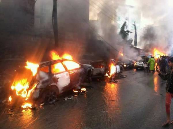 في كارثة كبيرة، التهمت النيران التي اشتعلت بسبب حريق محطة نفط في محافظة اب اليوم السبت، عدداً من المنازل والمحلات التجارية والسيارات.
