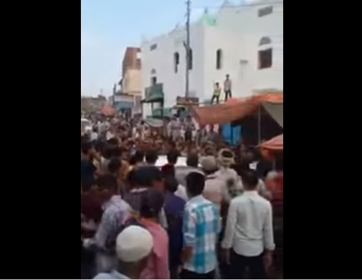 ويظهر في الفيديو سيارة المشرف الحوثي، وهي محاصرة وسط التجمع الشعبي الغاضب، ووسط هتاف المواطنين الغاضبين.