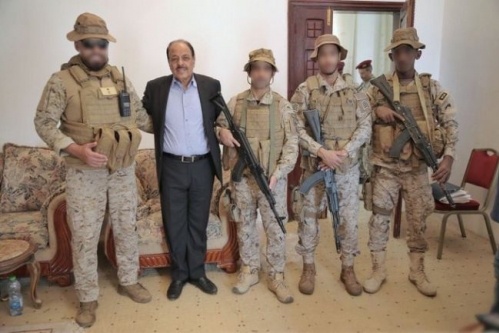 تداول ناشطون على شبكة الانترنت، الأحد، 02/تموز/2017 م، صورة للفريق الركن علي محسن الأحمر برفقة جنود من قوات المظلات السعودية وهم يرافقون نائب الرئيس في زياراته الى اليمن.