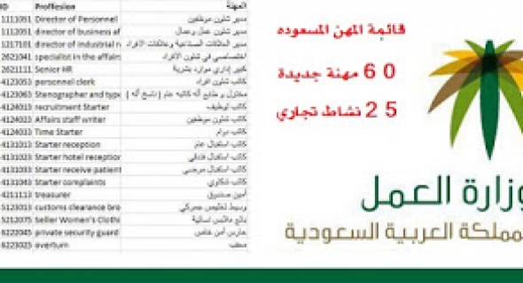 و جددت وزارة العمل التأكيد على وقف الاستقدام وتجديد رخص العمل لنحو 60 مهنة، وألزمت الشركات والمؤسسات باستبدالهم بسعوديين خلال الاشهر المقبلة، وقصر مهنة البيع على المواطنين، ووقف الاستقدام في 23 نشاطا تجاريا. والمهن هي: