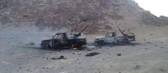 دمر طيران تحالف دعم الشرعية يوم أمس طقمين لعناصر المليشيات في موقع “الأشقرين” بمديرية صرواح غرب مدينة مأرب.