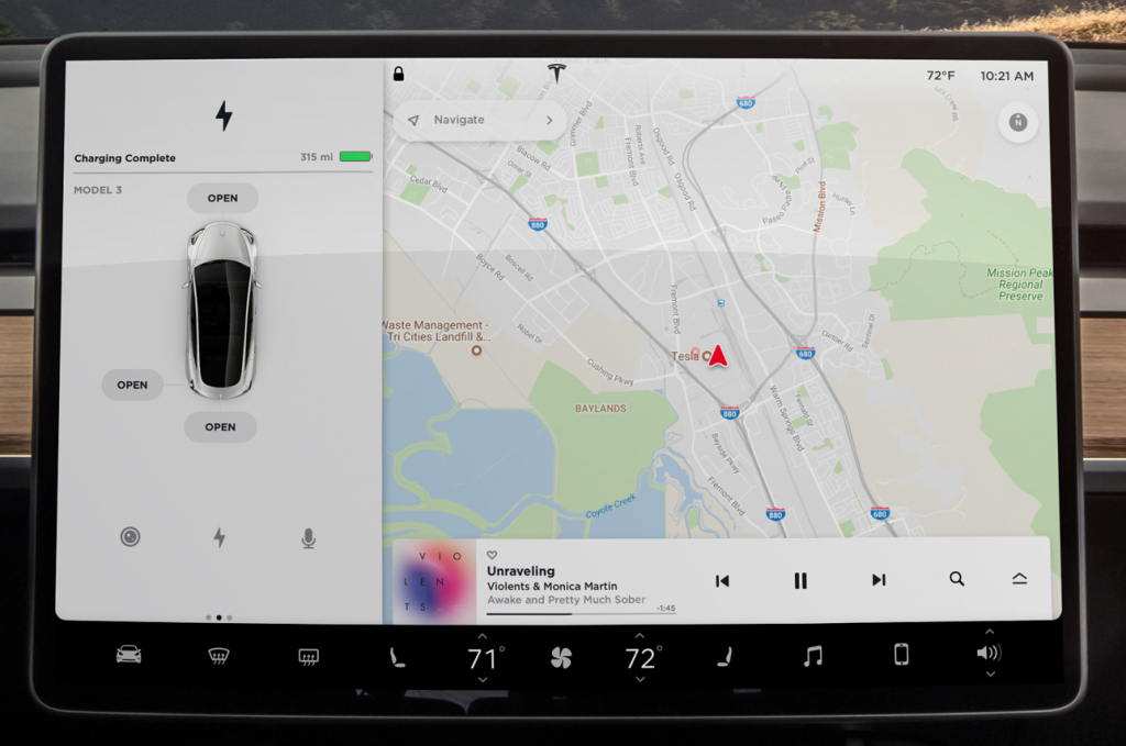 هيكل السيارة صلب بالمقارنة مع الألومنيوم في النماذج السابقة، والتصميمات الداخلية مبسطة إلى حد كبير، وهناك شاشة لوحة تحكم حجمها 15 أنش تقع في المنتصف ولا توجد شاشة ثانية خلف عجلة القيادة، وأشار ماسك إلى أن هذا التغيير يقلل من عدد أجهزة الكمبيوتر اللازمة إلى النصف.