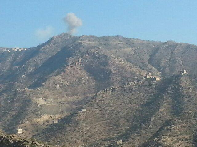 ونفذت مقاتلات التحالف غارتين على مواقع للإنقلابيين في جبل المنظرة الإستراتيجي، ودمرت منصة لإطلاق صواريخ الكاتيوشا بالإضافة إلى موقع آخر بنفس الجبل وتمخض عن تدمير قاعدة إطلاق الصواريخ ومقتل عدد من مقاتلي المليشيا.